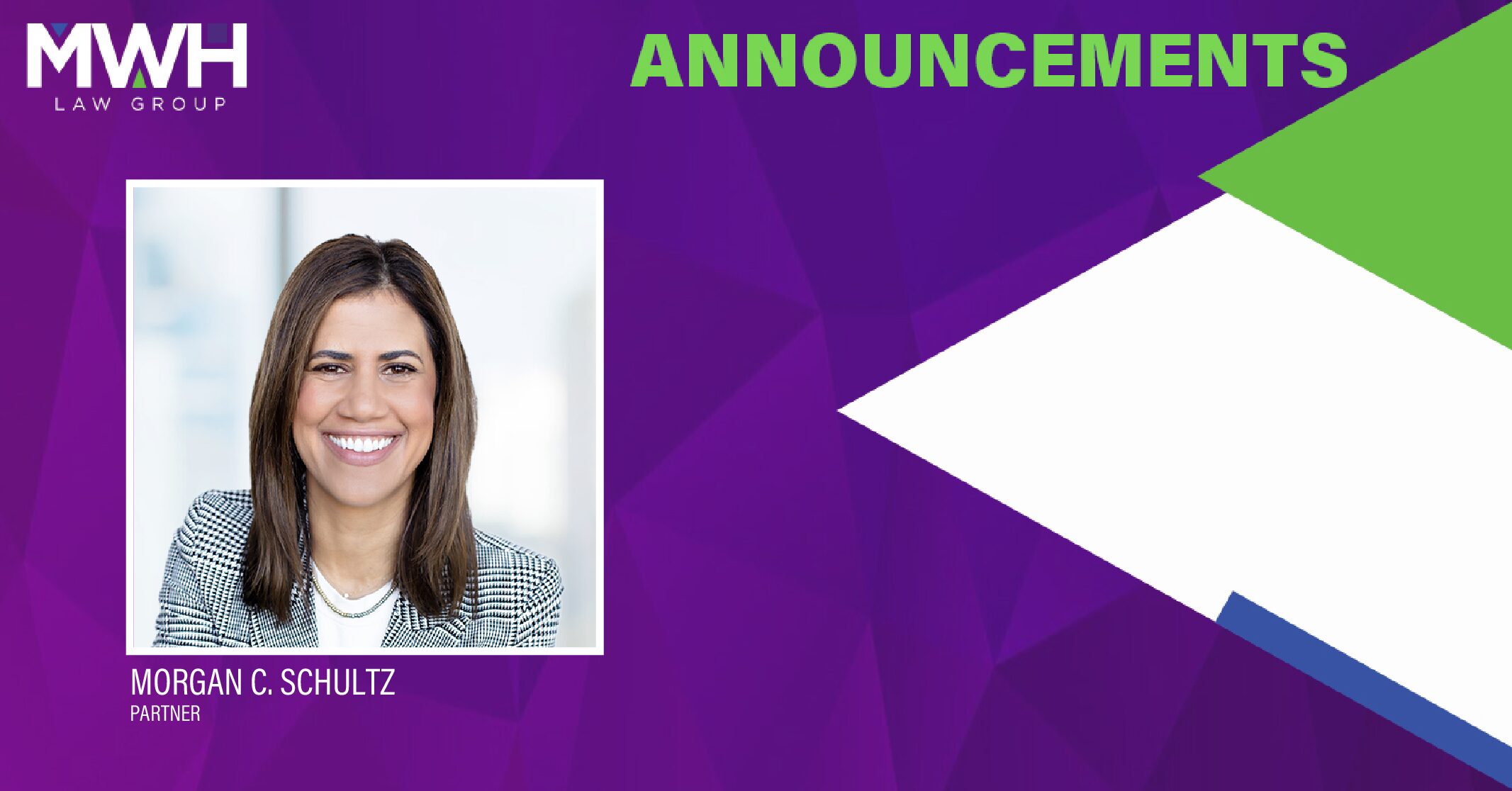 We are excited to welcome Morgan Schultz as the newest Partner at MWH Law Group LLP.